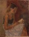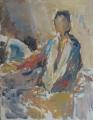 4505 3658 Sitzende in blauer Jacke, nach links (Studie) 1983 Öl auf Hartfaser anzeigen