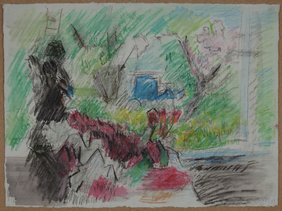 Kohle, Farbstifte, Aquarell