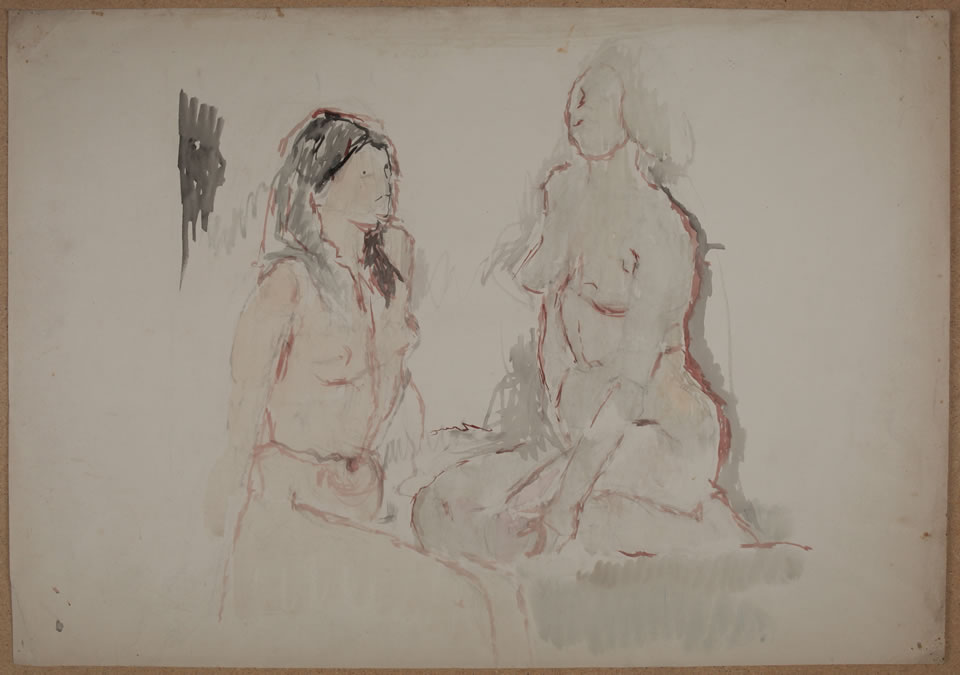 Zwei sitzende Akte (Skizze)
